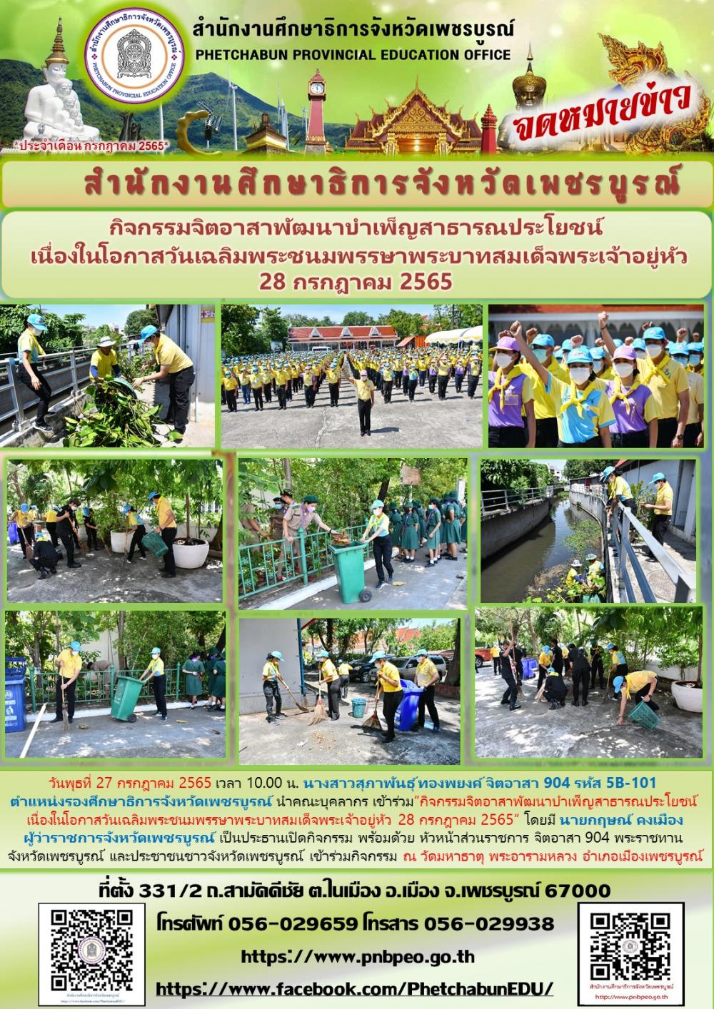 3 27 กรกฎาคม 2565 วันพุธที่ 27 กรกฎาคม 2565 “กิจกรรมจิตอาสาพัฒนาบำเพ็ญสาธารณประโยชน์ เนื่องในโอกาสวันเฉลิมพระชนมพรรษาพระบาทสมเด็จพระเจ้าอยู่หัว 28 กรกฎาคม 2565”   [27 กรกฎาคม 2565]   อ่าน 1985 ครั้ง