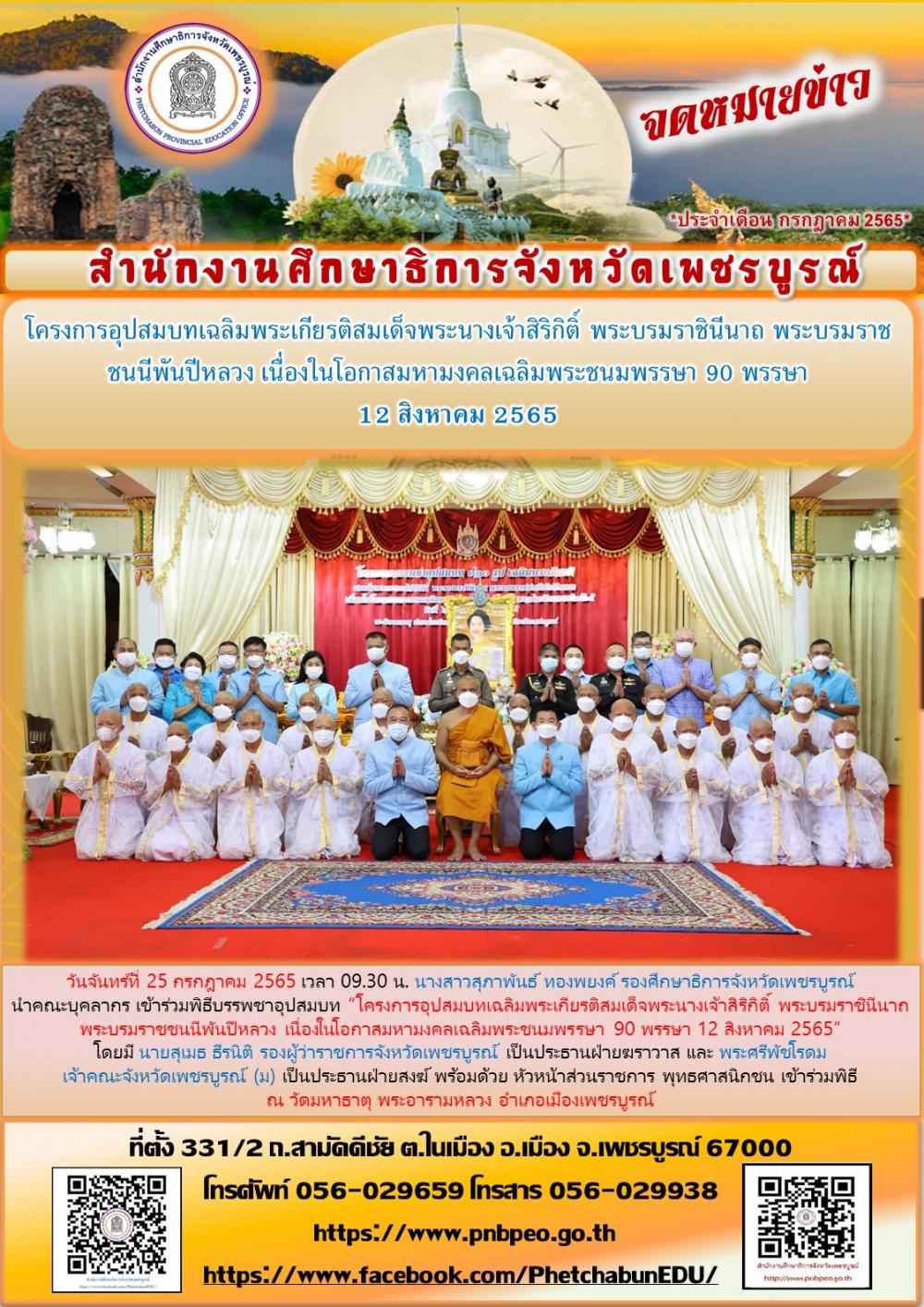 4 25 กรกฎาคม 2565 วันจันทร์ที่ 25 กรกฎาคม 2565 “โครงการอุปสมบทเฉลิมพระเกียรติสมเด็จพระนางเจ้าสิริกิติ์ พระบรมราชินีนาถ พระบรมราชชนนีพันปีหลวง เนื่องในโอกาสมหามงคลเฉลิมพระชนมพรรษา 90 พรรษา 12 สิงหาคม 2565”   [25 กรกฎาคม 2565]   อ่าน 348 ครั้ง