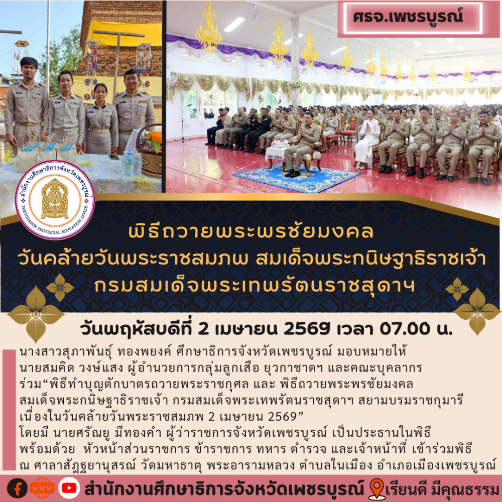 2 02 เมษายน 2569 วันพฤหัสบดีที่ 2 เมษายน 2569 สนับสนุนการลงพื้นที่ตรวจราชการติดตามนโยบายกระทรวงศึกษาธิการในพื้นที่จังหวัดเพชรบูรณ์ ประจำปีงบประมาณ 2569 รอบที่ 1   [02 เมษายน 2569]   อ่าน 4 ครั้ง