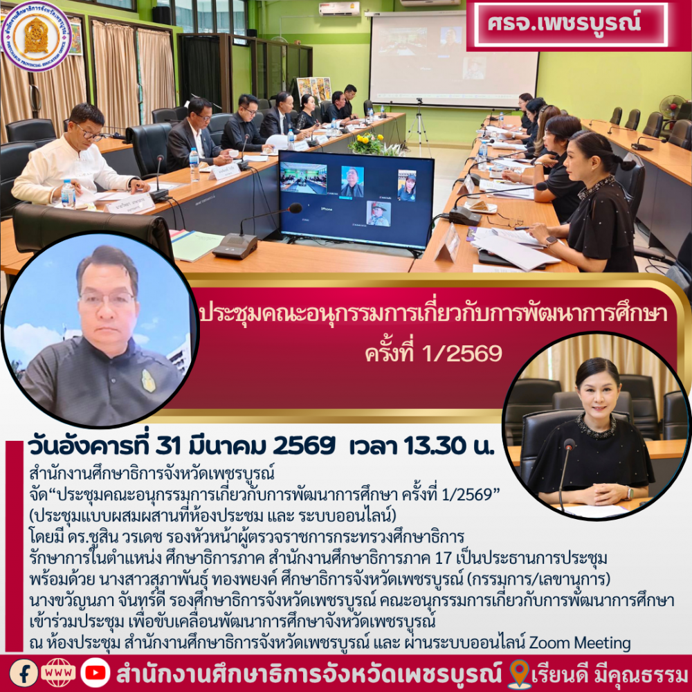15 26 มีนาคม 2569 วันพฤหัสบดีที่ 26 มีนาคม 2569 ประชุมคณะกรรมการติดตามการดำรงรักษาสภาพการเป็นสถานศึกษาพอเพียง จังหวัดเพชรบูรณ์ ประจำปี 2569   [26 มีนาคม 2569]   อ่าน 12 ครั้ง
