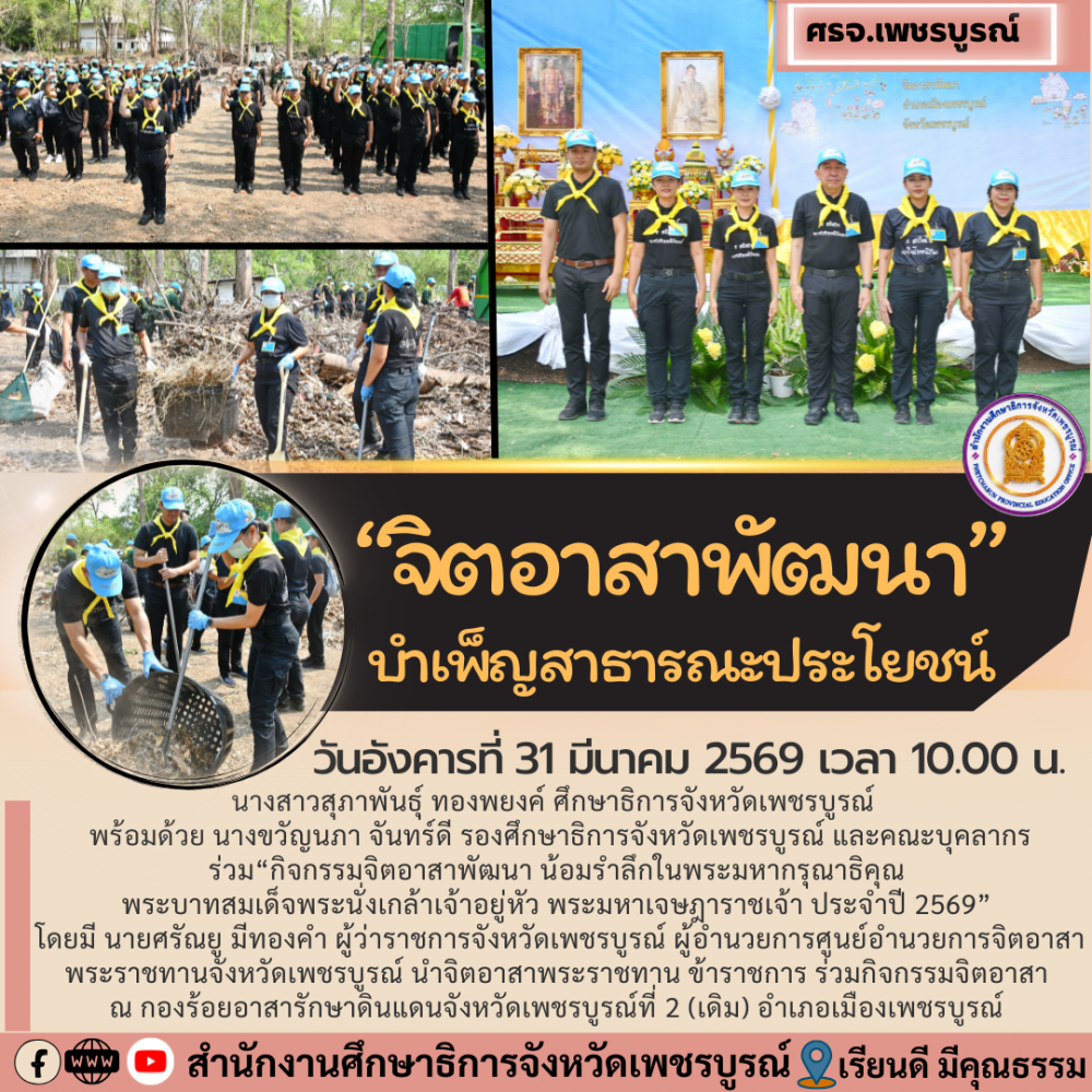 4 31 มีนาคม 2569 วันอังคารที่ 31 มีนาคม 2569 จกรรมจิตอาสาพัฒนา น้อมรำลึกในพระมหากรุณาธิคุณ พระบาทสมเด็จพระนั่งเกล้าเจ้าอยู่หัว พระมหาเจษฎาราชเจ้า ประจำปี 2569   [31 มีนาคม 2569]   อ่าน 7 ครั้ง