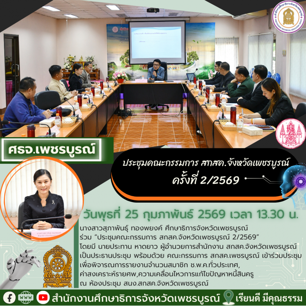 6 25 กุมภาพันธ์ 2569 วันพุธที่ 25 มกราคม 2569 ประชุมคณะกรรมการ สกสค.จังหวัดเพชรบูรณ์ ครั้งที่ 2/2569   [25 กุมภาพันธ์ 2569]   อ่าน 5 ครั้ง