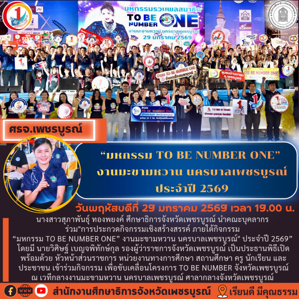 5 30 มกราคม 2569 วันศุกร์ที่ 30 มกราคม 2569 มหกรรมTO BE NUMBER ONE งานมะขามหวาน นครบาลเพชรบูรณ์" ประจำปี 2569   [30 มกราคม 2569]   อ่าน 21 ครั้ง