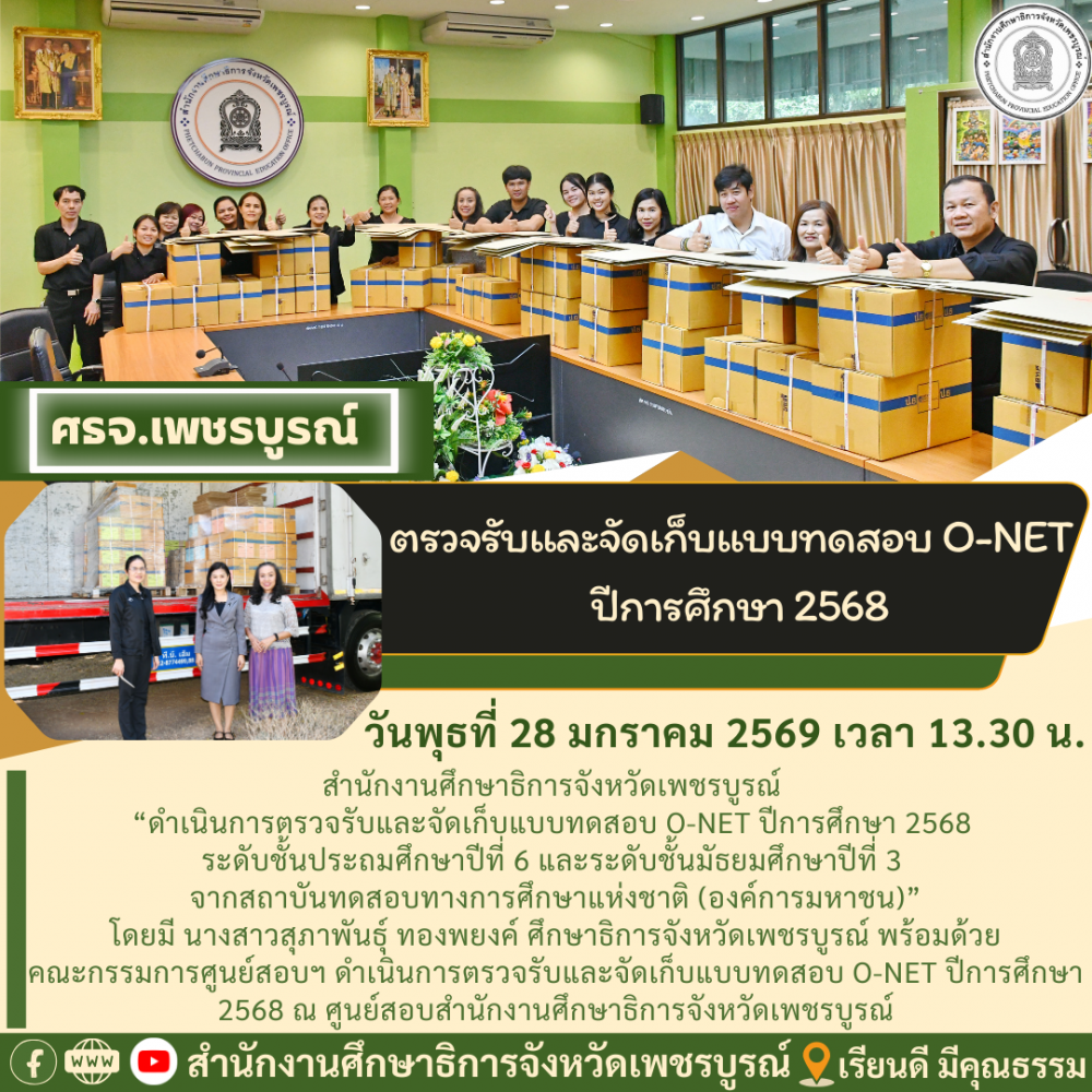 4 30 มกราคม 2569 วันพุธที่ 28 มกราคม 2568 ตรวจรับและจัดเก็บแบบทดสอบ O-NET ปีการศึกษา 2568   [30 มกราคม 2569]   อ่าน 24 ครั้ง
