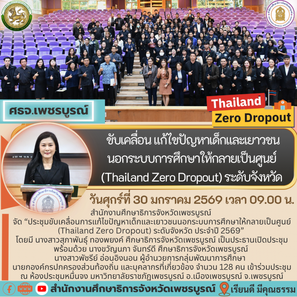 3 30 มกราคม 2569 วันศุกร์ที่ 30 มกราคม 2569 ประชุมขับเคลื่อนการแก้ไขปัญหาเด็กและเยาวชนนอกระบบการศึกษาให้กลายเป็นศูนย์ (Thailand Zero Dropout) ระดับจังหวัด ประจำปี 2569   [30 มกราคม 2569]   อ่าน 22 ครั้ง