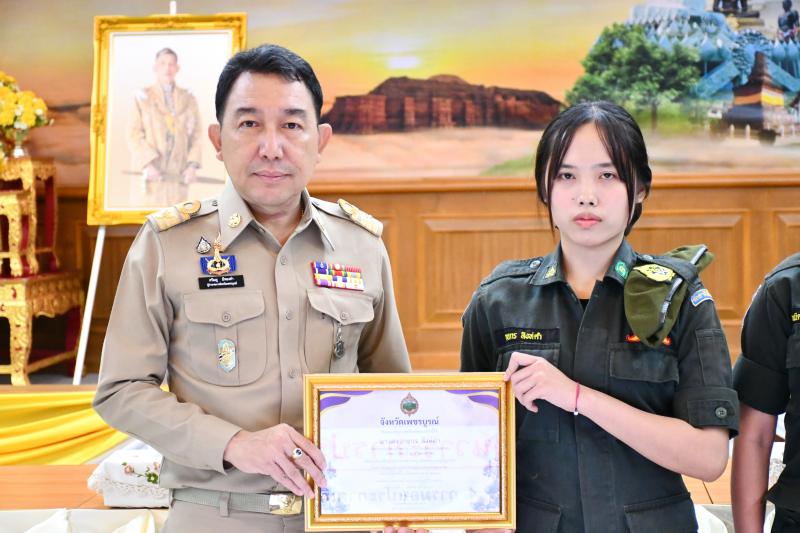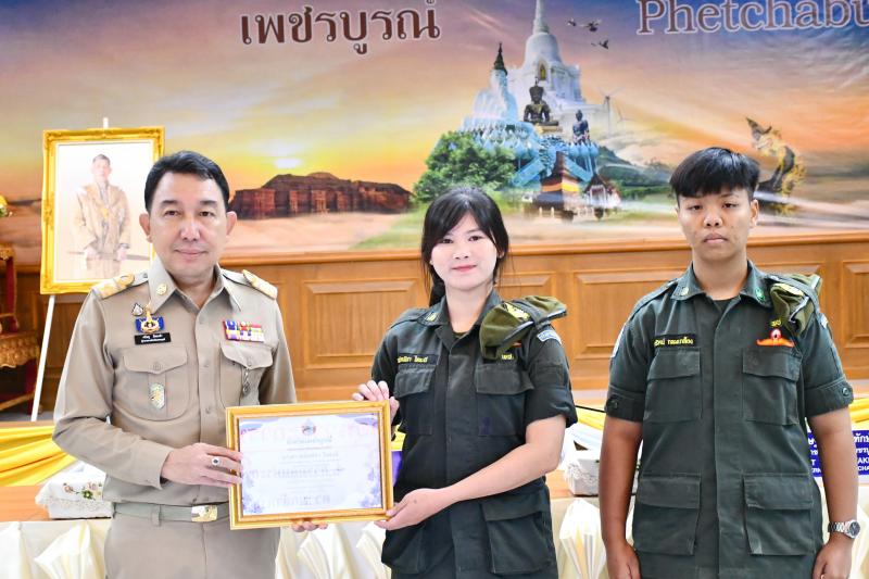 รายละเอียด >>  วันพุธที่ 29 ตุลาคม 2568 เวลา 09.15 น. สำนักงานศึกษาธิการจังหวัดเพชรบูรณ์ ร่วมกับ จังหวัดเพชรบูรณ์ จัด“พิธีมอบประกาศเกียรติคุณเพื่อเป็นการชื่นชมนักเรียนที่แสดงออกถึงความกล้าหาญ มีสติ และจิตอาสา ในการเข้าช่วยเหลือประชาชน” โดย นางสาวสุภาพันธุ์ ทองพยงค์ ศึกษาธิการจังหวัดเพชรบูรณ์ มอบหมายให้ นายสมคิด วงษ์แสง ผู้อำนวยการกลุ่มลูกเสือ ยุวกาชาดและกิจการนักเรียน กล่าวรายงาน โดยมี นายศรัณยู มีทองคำ ผู้ว่าราชการการจังหวัดเพชรบูรณ์ เป็นประธานมอบประกาศเกียรติคุณฯ ให้แก่นักศึกษาวิชาทหาร โรงเรียนโคกปรงวิทยาคม (จำนวน 3 คน) ได้แก่ 1.นางสาวกชกร สิงห์ดำ 2.นางสาวพนิตพิชา ไทธะนี 3.นางสาวกันยารัตน์ กลมเกลี้ยง เพื่อแสดงความยินดีและสร้างขวัญกำลังใจ พร้อมด้วย รองผู้ว่าราชการจังหวัดเพชรบูรณ์ หัวหน้าส่วนราชการ ผู้บริหารหน่วยงานทางการศึกษา/สถานศึกษา เข้าร่วมเป็นเกียรติในพิธีมอบรางวัลฯ ณ ห้องประชุมเมืองราด ชั้น 5 ศาลากลางจังหวัดเพชรบูรณ์ (อาคาร2) >>ในการนี้ นายสมคิด วงษ์แสง ผู้อำนวยการกลุ่มลูกเสือ ยุวกาชาดและกิจการนักเรียน กล่าวรายงานว่า ด้วยมีนักศึกษาวิชาทหาร โรงเรียนโคกปรงวิทยาคม จำนวน 3 คน ได้ทำการ ช่วยเหลือประชาชน์จากเหตุการณ์ฝนตกหนักต่อเนื่องนานกว่า 1 ชั่วโมง ในเขตเทศบาลเมือง วิเชียรบุรี ส่งผลให้มีน้ำรอการระบายเป็นจำนวนมากน้ำเอ่อท่วมถนนสร้างความเดือดร้อน แก่ประชาชนที่สัญจรไปมา นักศึกษาวิชาทหาร ทั้งสามคนได้ทำการช่วยเหลือในทันที โดยการช่วยโบกรถหลบทางน้ำท่วม ช่วยเข็นรถเสียให้พ้นน้ำ และช่วยเก็บเศษขยะที่อุดตันทางระบายน้ำ เพื่อให้น้ำสามารถไหลผ่านได้สะดวกขึ้น ซึ่งเป็นการแสดงออกถึงความกล้าหาญ มีสติ และจิตอาสา >เพื่อเป็นการชื่นชมนักศึกษาวิชาทหารที่แสดงออกถึงความกล้าหาญ มีสติ และ จิตอาสา ในการเข้าช่วยเหลือประชาชน จังหวัดเพชรบูรณ์ จึงมอบประกาศเกียรติคุณให้แก่นักศึกษาวิชาทหาร โรงเรียนโคกปรงวิทยาคม จำนวน 3 คน ดังนี้ 1.นางสาวกชกร สิงห์ดำ 2.นางสาวพนิตพิชา ไทธะนี 3.นางสาวกันยารัตน์ กลมเกลี้ยง