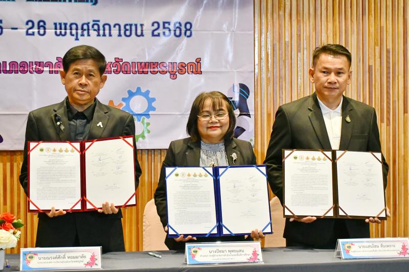 รายละเอียด >>  วันอังคารที่ 25 พฤศจิกายน 2568 เวลา 13.30 น. นางสาวสุภาพันธุ์ ทองพยงค์ ศึกษาธิการจังหวัดเพชรบูรณ์ ร่วม“ลงนามบันทึกข้อตกลง (MOU) กรอบความร่วมมือระหว่าง หน่วยงานทางการศึกษา กับ องค์การบริหารส่วนจังหวัดเพชรบูรณ์ และพิธีเปิดโครงการเพิ่มประสิทธิภาพการเรียนรู้ด้านสะเต็มศึกษา (STEM EDUCATION) ระหว่างวันที่ 25-26 พฤศจิกายน 2568”) โดยมี นายณรงค์ศักดิ์ หอมมาลัย รองนายกองค์การบริหารส่วนจังหวัดเพชรบูรณ์ เป็นประธานพิธีเปิดและลงนามบันทึกข้อตกลง (MOU)ฯ พร้อมด้วย นายพสกร ทวีทรัพย์ ผู้อำนวยการกลุ่มนโยบายและแผน ผู้บริหารหน่วยงานทางการศึกษา/สถานศึกษา คณะครู บุคลากรทางการศึกษา นักเรียน และหน่วยงานที่เกี่ยวข้อง เข้าร่วมโครงการฯ เพื่อยกระดับการเรียนรู้ด้าน STEM EDUCATION และ Coding ให้แก่นักเรียนในจังหวัดเพชรบูรณ์ ณ ภูแก้วรีสอร์ท อำเภอเขาค้อ จังหวัดเพชรบูรณ์ >>ในการนี้ นายวิทวัส ดวงภุมเมศ ผู้อำนวยการกองการศึกษา ศาสนาและวัฒนธรรม กล่าวว่า องค์การบริหารส่วนจังหวัดเพชรบูรณ์ ได้มีการส่งเสริมสนับสนุนสื่อการเรียน การสอนตามแนวทาง STEM EDUCATION และการ Coding ให้นักเรียนในเขตจังหวัด เพชรบูรณ์ ไม่น้อยกว่า ๑๐๐ แห่ง และตระหนักถึงความสำคัญของการส่งเสริมสนับสนุนการ เรียนรู้ด้านสะเต็มศึกษา (STEM EDUCATION) เพื่อเป็นการเพิ่มประสิทธิภาพให้กับนักเรียน ในเขตจังหวัดเพชรบูรณ์ ให้มีการพัฒนาทักษะโค้ดดิ้ง หุ่นยนต์ และไมโครบิท การเรียนรู้ด้าน วิทยาศาสตร์ เทคโนโลยี วิศวกรรม และคณิตศาสตร์ และการ Coding เป็นการต่อยอดการ เรียนรู้ให้เกิดนวัตกรรม ทำให้ครูผู้สอนสามารถพัฒนารูปแบบการจัดกิจกรรมการเรียนการ สอนได้อย่างเหมาะสมมีประสิทธิภาพ ผู้เรียน มีทักษะประสบการณ์ ความคิดสร้างสรรค์ นำไปสู่การสร้างนวัตกรรม เพิ่มโอกาสในการแข่งขันระดับชาติและสร้างโอกาสทางการศึกษา ในมหาวิทยาลัยชั้นนำ เพื่อคุณภาพชีวิตที่ดีต่อไปในอนาคต จึงเป็นเหตุผลสำคัญในการจัดทำ โครงการเพิ่มประสิทธิภาพการเรียนรู้ด้านสะเต็มศึกษา (STEM EDUCATION) ขึ้น โดยมี วัตถุประสงค์ของโครงการ ดังนี้ 1. เพื่อส่งเสริมให้นักเรียนมีความรู้ความเข้าใจในเนื้อหาด้านสะเต็มศึกษา 2. เพื่อพัฒนาทักษะการคิดวิเคราะห์ การแก้ปัญหา และการคิดสร้างสรรค์ 3. เพื่อส่งเสริมการเรียนรู้ผ่านการลงมือปฏิบัติจริงและการทำโครงงาน 4. เพื่อสร้างแรงบันดาลใจให้นักเรียนสนใจในอาชีพด้านวิทยาศาสตร์และเทคโนโลยี 5. เพื่อเตรียมความพร้อมให้นักเรียนสามารถเข้าร่วมแข่งขันในระดับชาติ >>โดยมีโรงเรียนที่เข้าร่วมโครงการ จำนวน 15 โรงเรียน ได้แก่ 1.โรงเรียนบ้านท่าข้าม 2.โรงเรียนอนุบาลว
