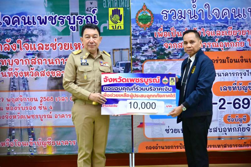 เรื่อง >>  วันพฤหัสบดีที่ 27 พฤศจิกายน 2568 บริจาคเงินช่วยเหลือผู้ประสบอุทกภัยจังหวัดสงขลา “รวมน้ำใจคนเพชรบูรณ์”