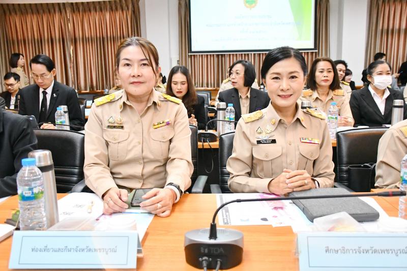 รายละเอียด >>  วันพฤหัสบดีที่ 27 พฤศจิกายน 2568 เวลา 09.00 น. นางสาวสุภาพันธุ์ ทองพยงค์ ศึกษาธิการจังหวัดเพชรบูรณ์ ร่วม“ประชุมคณะกรมการจังหวัดและหัวหน้าส่วนราชการ ครั้งที่ 11/2568” โดยมี นายศรัณยู มีทองคำ ผู้ว่าราชการจังหวัดเพชรบูรณ์ เป็นประธานประชุม พร้อมด้วย รองผู้ว่าราชการจังหวัดเพชรบูรณ์ หัวหน้าส่วนราชการประจำจังหวัด องค์กรปกครองส่วนท้องถิ่น และหน่วยงานรัฐวิสาหกิจ เข้าร่วมประชุม เพื่อขับเคลื่อนการพัฒนาจังหวัดเพชรบูรณ์ให้ก้าวหน้าอย่างต่อเนื่อง ณ ห้องเมืองราด ชั้น 5 อาคาร 2 ศาลากลางจังหวัดเพชรบูรณ์ >>ก่อนเข้าสู่วาระการประชุม มีการมอบรางวัลและประกาศเกียรติคุณให้หน่วยงานและบุคลากรที่มีผลงานโดดเด่น ได้แก่ มอบประกาศเกียรติคุณบุคลากรฝ่ายปกครองที่ผ่านเกณฑ์มาตรฐานศูนย์ราชการสะดวก (GECC) ประจำปี 2568 จำนวน 9 ราย มอบเกียรติบัตรองค์กรปกครองส่วนท้องถิ่นที่มีผลการปฏิบัติงานดีเด่นระดับจังหวัด จำนวน 4 แห่ง มอบโล่และประกาศเกียรติคุณอาสาสมัครแรงงานดีเด่นจังหวัดเพชรบูรณ์ จำนวน 4 ราย มอบใบประกาศนียบัตรแก่ศูนย์ยุติธรรมชุมชนที่มีส่วนร่วมในการขับเคลื่อนโครงการฯ ประจำปี 2568 จำนวน 5 ราย มอบเกียรติบัตรสตรีดีเด่นด้านการพัฒนาชุมชน ประจำปี 2569 จำนวน 8 ราย การประกาศวาระจังหวัดเพชรบูรณ์ “โครงการเพชรบูรณ์พอเพียง ระยะที่ 6” นอกจากนี้ที่ประชุมยังร่วมกิจกรรมรณรงค์ยุติความรุนแรงต่อเด็ก สตรี และบุคคลในครอบครัว พร้อมติดเข็มกลัดริบบิ้นสีขาวแก่หัวหน้าส่วนราชการ >>สำหรับการประชุมในวันนี้ ที่ประชุมได้แจ้งให้ทราบการย้ายและแต่งตั้งข้าราชการมาดำรงตำแหน่งที่จังหวัดเพชรบูรณ์จำนวน 5 ราย ประกอบด้วย พ.อ.ธรรมรัตน์ เหรียญทอง รอง ผอ.รมน.จังหวัดเพชรบูรณ์ นางปาริชาต รัตนมนตรี ปฏิรูปที่ดินจังหวัดเพชรบูรณ์ นางสาวศิษยา จันทภา พัฒนาสังคมและความมั่นคงของมนุษย์จังหวัดเพชรบูรณ์ นางอรินท์มาศ กาแก้ว หัวหน้าบ้านพักเด็กและครอบครัวจังหวัดเพชรบูรณ์ นายธวัชชัย เพชระบูรณิน ผู้อำนวยการสำนักงานทรัพยากรธรรมชาติและสิ่งแวดล้อมจังหวัดเพชรบูรณ์ พร้อมแจ้งให้ทราบถึง กิจกรรมสำคัญช่วงเดือนธันวาคม 2568 กิจกรรมวันคล้ายวันพระบรมราชสมภพ ร.9 / วันชาติ / วันพ่อแห่งชาติ 5 ธันวาคม 2568 วันคล้ายวันประสูติ สมเด็จพระเจ้าลูกเธอ เจ้าฟ้าพัชรกิติยาภา นเรนทิราเทพยวดี กรมหลวงราชสาริณีสิริพัชร มหาวัชรราชธิดา วันที่ 7 ธันวาคม พิธีบำเพ็ญกุศลปัญญาสมวาร (50 วัน) สมเด็จพระนางเจ้าสิริกิติ์ พระบรมราชินีนาถ พระบรมราชชนนีพันปีหลวง ในวันที่ 12 ธันวาคม กิจกรรมรวมพลังแห่งความภักดี แปรอักษร วายเป็นพระ