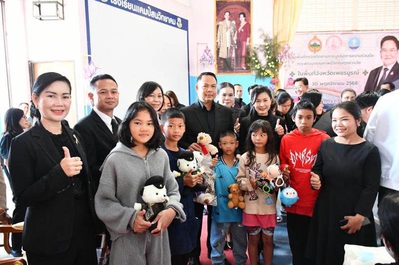 รายละเอียด >>  วันอาทิตย์ที่ 30 พฤศจิกายน 2568 เวลา 09.30 น. สำนักงานศึกษาธิการจังหวัดเพชรบูรณ์ ร่วม “ลงพื้นที่ตรวจติดตามการบูรณาการพัฒนาคุณภาพชีวิตคนทุกช่วงวัย กระทรวงศึกษาธิการร่วมกับกระทรวงพัฒนาสังคมและความมั่นคงของมนุษย์ ในพื้นที่จังหวัดเพชรบูรณ์” โดยมี นายอัครา พรหมเผ่า รัฐมนตรีว่าการกระทรวงการพัฒนาสังคมและความมั่นคงของมนุษย์ พร้อมด้วย นายนิยม ไผ่โสภา ผู้ตรวจราชการกระทรวงศึกษาธิการ เขตตรวจราชการที่ 17 นางสาวสุภาพันธุ์ ทองพยงค์ ศึกษาธิการจังหวัดเพชรบูรณ์ นางขวัญนภา จันทร์ดี รองศึกษาธิการจังหวัดเพชรบูรณ์ คณะศึกษาธิการภาค 17 หัวหน้าส่วนราชการ ผู้บริหารหน่วยงานทางการศึกษา/สถานศึกษา ครู นักเรียน และประชาชน เข้าร่วม เพื่อติดตามนโยบายของกระทรวงศึกษาธิการการพัฒนาคุณภาพชีวิตคนทุกช่วงวัยในพื้นที่จังหวัดเพชรบูรณ์ ณ โรงเรียนแคมป์สนวิทยาคม ตำบลแคมป์สน อำเภอเขาค้อ จังหวัดเพชรบูรณ์ >>โอกาสนี้ นายอัครา พรหมเผ่า รัฐมนตรีว่าการกระทรวงการพัฒนาสังคมและความมั่นคงของมนุษย์ พร้อมด้วย นายนิยม ไผ่โสภา ผู้ตรวจราชการกระทรวงศึกษาธิการ เขตตรวจราชการที่ 17 และคณะ ได้พบปะประชาชน หัวหน้าส่วนราชการ ผู้รับบริการ และเจ้าหน้าที่จังหวัดเพชรบูรณ์ พร้อมมอบนโยบายการพัฒนาคุณภาพชีวิตคนทุกช่วงวัย เน้นการทำงานเชิงรุก เพื่อให้ความช่วยเหลือเข้าถึงผู้ที่เดือดร้อนอย่างรวดเร็วและทั่วถึง พร้อมทั้งได้ มอบผ้าห่มกันหนาวจำนวน 1,200 ชุด ให้แก่ประชาชนกลุ่มเปราะบาง เพื่อบรรเทาความเดือดร้อนจากภาวะอากาศหนาว ในพื้นที่สูงของอำเภอเขาค้อ