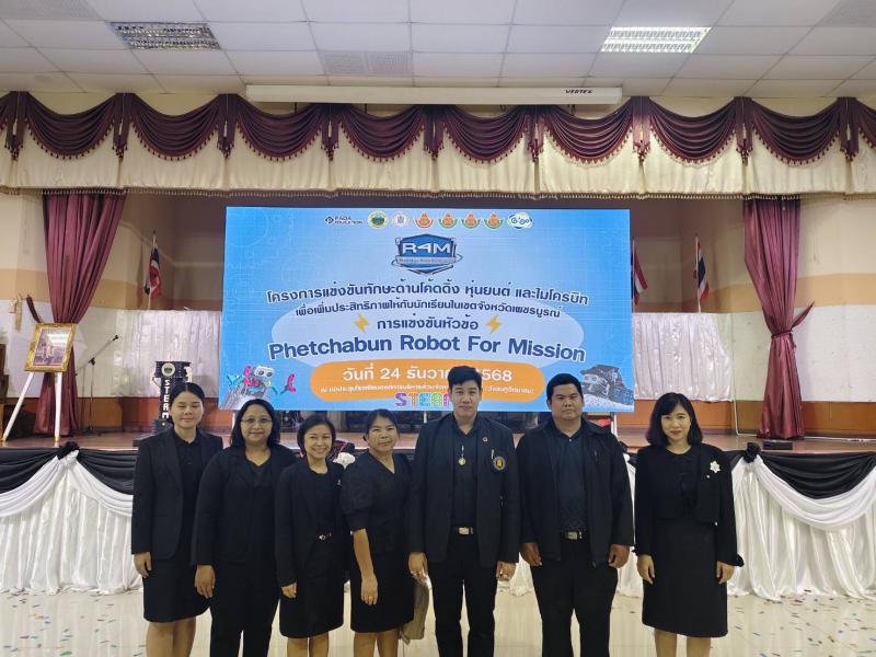 รายละเอียด >>  วันพุธที่ 24 ธันวาคม 2568 เวลา 08.30 น. นางสาวสุภาพันธุ์ ทองพยงค์ ศึกษาธิการจังหวัดเพชรบูรณ์ มอบหมายให้ นายพสกร ทวีทรัพย์ ผู้อำนวยการกลุ่มนโยบายและแผน และคณะบุคลากร ร่วม“โครงการแข่งขันทักษะด้านโค้ดดิ้ง หุ่นยนต์ และไมโครบิท เพื่อเพิ่มประสิทธิภาพให้กับนักเรียนในเขตจังหวัดเพชรบูรณ์ ในหัวข้อ Phetchabun Robot For Mission (R4M)” (จัดโดย องค์การบริหารส่วนจังหวัดเพชรบูรณ์) โดยมี นายอัครเดช ทองใจสด นายกองค์การบริหารส่วนจังหวัดเพชรบูรณ์ เป็นประธานฯ โดย นายณรงค์ศักดิ์ หอมมาลัย รองนายกองค์การบริหารส่วนจังหวัดเพชรบูรณ์ กล่าวรายงาน พร้อมด้วย คณะผู้บริหาร หัวหน้าส่วนราชการ ครู นักเรียนและผู้สังเกตการณ์ เข้าร่วมในพิธีฯ ณ หอประชุมชมพูภูพิงค์ โรงเรียนองค์การบริหารส่วนจังหวัดเพชรบูรณ์ (วังชมภูวิทยาคม) >>ทั้งนี้ เวลา 13.30 น. นายศรัณยู มีทองคำ ผู้ว่าราชการจังหวัดเพชรบูรณ์ ให้เกียรติเป็นประธานปิดโครงการฯ พร้อมเยี่ยมชมนิทรรศการโลกแห่งนวัตกรรมศตวรรษที่ 21 และชมการแข่งขันของโรงเรียน จำนวน 73 ทีม โดยมี คณะผู้บริหาร หัวหน้าส่วนราชการ คณะครู นักเรียนผู้เข้าร่วมแข่งขัน และผู้สังเกตการณ์ เข้าร่วมในพิธีฯ ณ หอประชุมชมพูภูพิงค์ โรงเรียนองค์การบริหารส่วนจังหวัดเพชรบูรณ์ (วังชมภูวิทยาคม) >>นายณรงค์ศักดิ์ หอมมาลัย รองนายกองค์การบริหารส่วนจังหวัดเพชรบูรณ์ กล่าวรายงานว่า การจัดงานวันนี้เพื่อส่งเสริมและพัฒนาผู้เรียน ให้มีทักษะในการเรียนรู้ทางวิทยาศาสตร์ เทคโนโลยี วิศวกรรม และคณิตศาสตร์ ตามแนวทางสะเต็มศึกษา (STEM Education) และการเรียนภาษาคอมพิวเตอร์ (Coding) ให้สามารถแข่งขันทั้งในเวทีระดับภาคระดับประเทศ และต่างประเทศได้ นอกจากนี้ยังเป็นการเปิดโอกาสให้กับนักเรียนได้มีประสบการณ์แข่งขันในระดับจังหวัดและสะสมผลงานการแข่งขันเพื่อยื่นเข้าศึกษาต่อระดับมหาวิทยาลัย เพื่อเรียนในสาขาวิชาวิศวกรรม หรือสาขาคอมพิวเตอร์อีกด้วย