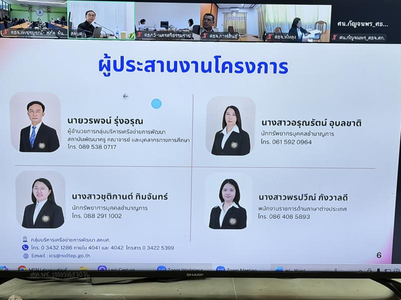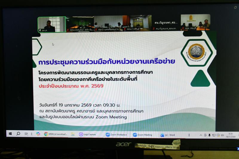 รายละเอียด >>  วันจันทร์ที่ 19 มกราคม 2569 เวลา 09.30 น. นางสาวสุภาพันธุ์ ทองพยงค์ ศึกษาธิการจังหวัดเพชรบูรณ์ พร้อมด้วย นางสาววราภรณ์ ผึ่งผาย ผู้อำนวยการกลุ่มนิเทศติดตามและประเมินผล และนางสุภัค จันทสุข ศึกษานิเทศก์ชำนาญการพิเศษ ร่วม“ประชุมความร่วมมือกับหน่วยงานเครือข่าย ตาม โครงการพัฒนาสมรรถนะครูและบุคลากรทางการศึกษา โดยความร่วมมือของภาคีเครือข่ายในระดับพื้นที่ ประจำปีงบประมาณ 2569” (ผ่านระบบ Zoom Meeting) โดยมี ศึกษาธิการภาค ศึกษาธิการจังหวัด และหน่วยงานที่เกี่ยวข้อง เข้าร่วมประชุม ณ ห้องประชุม สำนักงานศึกษาธิการจังหวัดเพชรบูรณ์ (ผ่านระบบ Zoom Meeting)