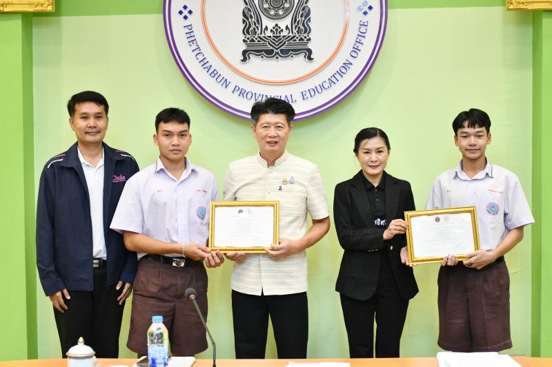 รายละเอียด >>  วันอังคารที่ 20 มกราคม 2569 เวลา 09.30 น. สำนักงานศึกษาธิการจังหวัดเพชรบูรณ์ จัด “พิธีมอบรางวัลการประกวดวิดีโอพอดแคสต์สร้างสรรค์ หัวข้อ “เสียงไทย สายใจแห่งชาติ” ระดับจังหวัด” โดยมี นายกกชัย ฉายรัศมีกุล รองผู้ว่าราชการจังหวัดเพชรบูรณ์ เป็นประธานมอบรางวัล พร้อมด้วย นางสาวสุภาพันธุ์ ทองพยงค์ ศึกษาธิการจังหวัดเพชรบูรณ์ นางขวัญนภา จันทร์ดี รองศึกษาธิการจังหวัดเพชรบูรณ์ คณะกรรมการศึกษาธิการจังหวัดเพชรบูรณ์ และเจ้าหน้าที่ที่เกี่ยวข้อง เข้าร่วม เพื่อแสดงความยินดีกับ ครู และนักเรียน ที่ได้รับรางวัล ณ ห้องประชุม สำนักงานศึกษาธิการจังหวัดเพชรบูรณ์ >>สำนักงานคณะกรรมการส่งเสริมการศึกษาเอกชน ร่วมกับ สำนักงานศึกษาธิการ จังหวัดเพชรบูรณ์ จัดกิจกรรมการประกวดวิดีโอพอดแคสต์สร้างสรรค์ หัวข้อ “เสียงไทย สายใจแห่งชาติ” ขึ้น เพื่อเป็นเวทีให้นักเรียนได้ฝึกทักษะการคิด การสื่อสาร และการใช้เทคโนโลยีอย่างสร้างสรรค์ กลุ่มเป้าหมาย คือนักเรียนที่กำลังศึกษาอยู่ในโรงเรียนเอกชนในระบบ ประเภทสามัญศึกษา และประเภทนานาชาติ โดยแบ่ง การประกวดออกเป็น 2 ระดับ คือ 1) ระดับจังหวัด/กรุงเทพมหานคร และ 2) ระดับประเทศ ซึ่งสำนักงาน ศึกษาธิการจังหวัดเพชรบูรณ์ รับผิดชอบดำเนินการจัดการประกวดระดับจังหวัด รางวัลการประกวด ระดับจังหวัด ประกอบด้วย รางวัลชนะเลิศ เกียรติบัตรพร้อมเงินรางวัล จำนวน 2,500 บาท (สองพันห้าร้อยบาท ถ้วน) จำนวน 1 รางวัล รางวัลรองชนะเลิศ อันดับ 1 เกียรติบัตรพร้อมเงินรางวัล จำนวน 1,500 บาท (หนึ่งพัน -ห้าร้อยบาทถ้วน) จำนวน 1 รางวัล รางวัลรองชนะเลิศ อันดับ 2 เกียรติบัตรพร้อมเงินรางวัล จำนวน 1,000 บาท (หนึ่งพันบาทถ้วน) จำนวน 1 รางวัล ทั้งนี้ ผลการตัดสินของคณะกรรมการถือเป็นที่สิ้นสุด นั้น บัดนี้ คณะกรรมการตัดสินการประกวดวิดีโอพอดแคสต์สร้างสรรค์ หัวข้อ “เสียงไทย สายใจ แห่งชาติ” ระดับจังหวัด ได้ดำเนินการพิจารณาคัดเลือกและตัดสินการประกวดเสร็จสิ้นเรียบร้อยแล้ว จึงขอประกาศรายชื่อผู้ได้รับรางวัล ดังนี้ 1. รางวัลชนะเลิศ ทีมMetta Production นางสาวมุกดารัศม์ พามา นายนฤเบศก์ บุญชู นายชนะพล อุดแก้ว 2. รางวัลรองชนะเลิศ อันดับ 1 ทีมMW.NEWVIEWS นายอนุพงษ์ พาทา นางสาวธัญญรัตน์ แก่นไทย นางสาวพัชราภรณ์ นะลาพล โรงเรียนเมตตาวิทยา โรงเรียนเมตตาวิทยา