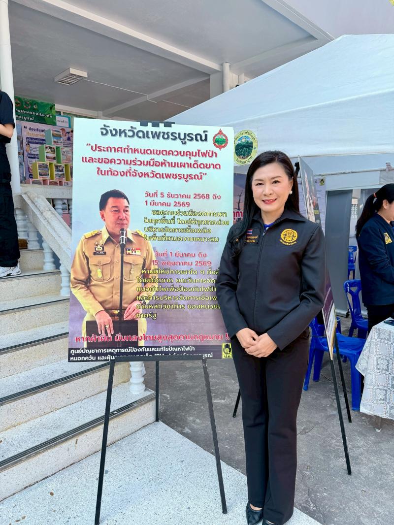 รายละเอียด >>  วันพฤหัสบดีที่ 12 กุมภาพันธ์ 2569 เวลา 09.00 น. นางสาวสุภาพันธุ์ ทองพยงค์ ศึกษาธิการจังหวัดเพชรบูรณ์ ร่วม“พิธีเปิดโครงการขับเคลื่อนการป้องกันและแก้ไขปัญหาไฟป่า หมอกควัน และฝุ่น PM 2.5 จังหวัดเพชรบูรณ์ ประจำปี 2569” โดยมี นายศรัณยู มีทองคำ ผู้ว่าราชการจังหวัดเพชรบูรณ์ เป็นประธานในพิธีฯ พร้อมด้วย นายวิศิษฐ์ เบญจพิทักษ์กุล รองผู้ว่าราชการจังหวัดเพชรบูรณ์ นายคณีธิป บุณยเกตุ รองนายกองค์การบริหารส่วนจังหวัดเพชรบูรณ์ นายวีระวัฒน์ วัฒนวงศ์พฤกษ์ ที่ปรึกษานายกองค์การบริหารส่วนจังหวัดเพชรบูรณ์ นายสัณฐิติ ตาลเพชร นักวิชาการศึกษาปฏิบัติการ หัวหน้าส่วนราชการ ผู้นำท้องถิ่น/ท้องที่ และหน่วยงานที่เกี่ยวข้อง เข้าร่วม เพื่อขับเคลื่อนการป้องกันและแก้ไขปัญหาไฟป่า หมอกควัน และฝุ่น PM 2.5 จังหวัดเพชรบูรณ์ ณ หอประชุมองค์การบริหารส่วนจังหวัดเพชรบูรณ์ อ.เมืองเพชรบูรณ์ จ.เพชรบูรณ์ >>โครงการดังกล่าวมีวัตถุประสงค์ เพื่อบูรณาการความร่วมมือทุกภาคส่วน การสร้างความรู้ ความเข้าใจ ในการป้องกันและแก้ไขปัญหาไฟป่า หมอกควัน และฝุ่น PM 2.5 อย่างเป็นระบบ ลดผลกระทบต่อสุขภาพของประชาชนและสิ่งแวดล้อมในพื้นที่จังหวัดเพชรบูรณ์